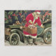 Vintage Santa & Old Car Holiday Christmas Postcard