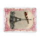 A vintage Santa and his sleigh full of toys flies past the Eiffel Tower from an antique French postcard, surrounded by a vintage frame. Many matching items are available in my Zazzle store.