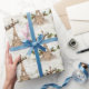Vintage Santa over Paris Christmas Wrapping Papaer Paper