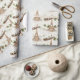 A vintage Santa and his sleigh full of toys flies past the Eiffel Tower in sepia from an antique French postcard from the Exposition in the 1800s, on a subtle background collage of vintage sheet music and framed by vintage sprigs of holly, to make a great French themed vintage Christmas gift wrapping paper.