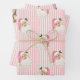 Vintage Santa & Reindeer Pink Stripe Wrapping Paper Sheet