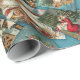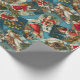 Vintage Santa postcards scattered on a blue background. Green and red versions (with different postcards) also available. Available in four types of premium paper and different five sizes. Width: 30”, Length: Multiple choices from 6 feet - 60 feet. Each roll up to 15’ in length; Lengths greater than 15’ shipped as multiple 15’ rolls. 6' roll wraps 3 shirt-sized boxes. Printed in USA