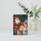 A charming vintage Christmas business card featuring Santa Claus with cute little angels and Toys.