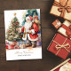 Vintage Santa & Xmas Tree Personalized Holiday Card