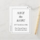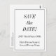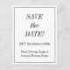 On the front of this vintage and classic look save-the-date postcard design is the message "SAVE the DATE!", along with customized names, a date, and event details. Postcards like this could be used to let potential guests know about an upcoming wedding celebration or some other event.