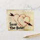 Romantic old fashioned vintage style look "Save The Date" postcards with two red hearts and arrow. Matching grungy text can easily be changed and personalized. Great for upcoming weddings, engagement, anniversary parties, etc. Back can also be personalized with more text or left blank.