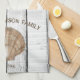 Add an elegant touch to your kitchen with this Vintage Scallop Shell Kitchen Towel. Kitchen towel design features a vibrant vintage conch shell and custom text for you to personalize with your family name against a light grey paper textured background. Additional home decor items available with this design.