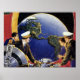 Vintage Science Fiction Astronauts Orbiting Earth Poster