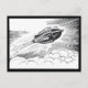 Vintage illustration futuristic Victorian black and white science fiction transportation image. A spaceship rocketship flying through the clouds in the sky. A classic 50s retro comic book sci fi design of the future.