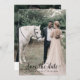 This vintage script light photo template save the date card is perfect for a minimalist wedding. The romantic black and white design features unique whimsical typography with simple bohemian style. Customizable in any colour. Keep the design minimal and elegant, as is, or personalize it by adding your own graphics and artwork.