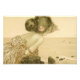 Raphael Kirchner vintage sea girl with pink rose print. Art nouveau painting from 1901. From Kirchner’s series Girls Between Brown and Green Edges, this beautiful entry features a young woman with a pink rose in her waving dark hair staring out into the ocean. A great gift for fans of Raphael Kirchner, vintage art, art nouveau, and cute seaside prints.