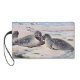 Three common seals with dappled white and grey patterns on their skin lounge on the sandy shores of a beach/ More seals can be seen in the background along with a wavy blue ocean. This gorgeous vintage wildlife illustration would be perfect for any seal lover or ocean theme. From 'Wild Life of the World' by R. Lydekker (1916). Modified from original image from Biodiversity Heritage Library. Http://www.biodiversitylibrary.org