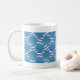 A blue seashell and waves pattern drawing. Mosaic style design in shades of blue.