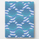 A blue seashell and waves pattern drawing. Mosaic style design in shades of blue.