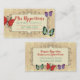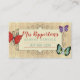 Cute shabby chic sewing notions butterflies featured on these business cards for sewing crafts, seamstress, or alterations sewing service. Butterfly scissors, buttons and spool of thread on a decorative, aged polka dot background.