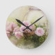 Vintage Shabby Chic Watercolour Pink Roses Round Clock