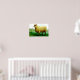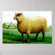 A quaint painting of a sheep or lamb in a soft green grass field or pasture.