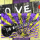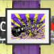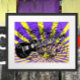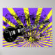 Modern Geometric Abstraction Yellow and Purple 80s Guitar Disco Musical Notes Swirl Poster.
