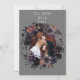 in this vintage illustration, a romantic skeleton couple gaze into each other's eye holes for this unique Wedding invitation. The groom skeleton wears a top hat and daycoat while the bride to be skeleton is draped in romantic burnt orange garden roses. A sunset sky in blush and oranges adds extra colour. The reverse of the card features a wreath of goth purples with pops of burnt orange surrounding your couple photo. The halloween Goth wedding trope "till death do us part" is a template should you care to add your own touch. I used a chilly medium grave stone grey background to set off the oranges. Choose this fun Halloween or late fall invitation to set the whimsically dark mood for your very memorable wedding.