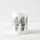 Vintage skeleton hand illustrations in black and white on a bone china mug for Halloween or anytime. This is such a fun thing to have. I love it.