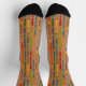 Show off your love of skiing even when you're not out on the slopes with these patterned socks. The socks feature my illustrations of colorful vintage skis against a light brown background with a horizontal stripe design that mimics the look of a ski lodge's wood siding.