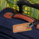 It's the perfect luggage tag for your next big ski trip. This tag features my illustrations of colorful vintage skis set against a light brown background with the look of retro ski lodge wood siding. This tag is ready to be personalized with your own custom text on the front and your full contact details (or other custom text) on the reverse side.
