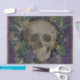 Vintage skull with deep purple roses and muted foliage, arranged as a dramatic full-sheet design. Perfect for decoupage, junk journals, or Halloween-inspired craft projects where one striking image makes the impact.