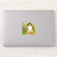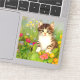 Sticker featuring a smiling cat! This funny cat is playing in a garden of pink, orange, red, and blue flowers. A remarkable gift for cat lovers and Victorian art enthusiasts!