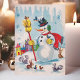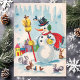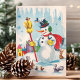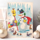 Celebrate the holiday season with this charming vintage Christmas card featuring a joyful snowman surrounded by adorable animals. The whimsical scene includes birds, squirrels, and a rabbit, all set against a colourful winter village backdrop. This nostalgic holiday card captures the magic and innocence of a classic Christmas, perfect for sending warm wishes to friends and family. Customize with your personal message inside to make it uniquely yours.
