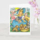 Retro / Vintage Mother's Day greeting card. Lovely young girl in blue dress and hat with basket of puppies! With Love to Mother's on Mother's Day!