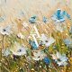 This vibrant oil painting captures the serene beauty of a meadow in full bloom. Delicate blue and white wildflowers dance gracefully amidst tall golden grasses, brought to life by expressive, textured brushstrokes. The soft, pastel hues of the background complement the lively pops of colour in the foreground, creating a sense of movement and tranquillity. Perfect for those who love nature-inspired art, this piece brings the calming essence of a spring meadow into any room, offering a refreshing and uplifting visual experience.