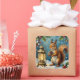 A charming vintage-style Christmas painting featuring a squirrel beside a glowing lantern, surrounded by holly and pine. This nostalgic artwork brings woodland warmth and classic holiday coziness.