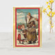 The front of this Holiday greeting card features a vintage image of St Nicolas carrying his basket of goodies and visiting with French peasant children. Behind them is a snowy winter landscape.The image is placed on a light infused gold gradient background, and is bordered in red with a thin gold line.. The inside of the card has the gold background on the left and the other side is white, and partially left blank for your own message, with custom text fields for your signature at the bottom. Celebrate Christmas the old fashioned way with this beautiful card showcasing an image from days gone by.
