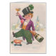 A vintage 1920's-30's St. Patrick's Day postcard illustration of a cute boy wearing top hat and tails and merrily toasting with a glass and bottle of champagne. There are shamrocks on his hat and in the mouth of a little toy pig. Much good luck to be had by all with this one!