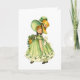 La vintage illustration of a little but dressed à St. Patrick's Day. She carries a basket of shamrocks and gives a flirtatious glance back over her shoulder that would kleany Irish boy's heart ! The Message inside the card is : "A wish that every day for you will be happy from the start, and may you always have good luck and a song within your heart. Joyeux Saint-Patrick !"