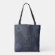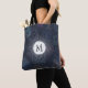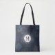 Vintage stamp pattern in blue on a tote you can personalize with your initial.