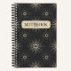 This black spiral notebook is a captivating blend of vintage charm and celestial elegance, designed to ignite your imagination and keep your thoughts organized. The cover showcases a mesmerizing pattern of antique-style suns, intricate astrological symbols, and delicate constellations, creating a timeless cosmological design. Above this enchanting artwork, the word "Notebook" is displayed in a refined, contemporary font, perfectly balancing the vintage elements with modern appeal. The deep black background enhances the intricate gold-toned details, giving the notebook an air of sophistication that is both magical and practical.