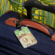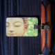 Keep your inner peace during your travels with this rendering of a Buddha with the Ohm symbol on it's forehead against a green leafy background. Customizable text on the back for further identification.