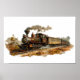 Vintage steam train landscape illustration Small Poster