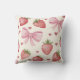 Embrace the coquette, aesthetic, with this charming watercolor, strawberry, and, pink, bows, decorative pillow. Featuring a sweet, hand-painted, fruit, pattern, with delicate ribbons, and, polka, dots,, this cushion adds a touch of vintage, cottagecore, feminine, style, to any space. Perfect for a nursery, teen, bedroom, girl's, room, or, cozy, reading, nook,. This high-quality, fabric, throw, pillow, is a beautiful housewarming, or, birthday, gift, for lovers of shabby, chic, and, grand millennial, decor,.