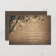 Vintage wedding rsvp card with fireflies mason jars and twinkle lights hanging on the tree branches.