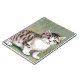 Notebook featuring a striped kitten. Black stripes run across a white kitten’s fur. A white flower decorates a basket in a grassy field. A fantastic gift for cat lovers and Victorian art enthusiasts!
