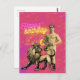 Fun and funky greeting features tinted vintage photo cutout of a strongman / boxer with added crown, heraldry lion illustration and neon "happy birthday" wishes on a hot pink and orange background. You can't get more festive than this!