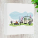 Like to go camping with a camper then this design is perfect. It is a vintage style camper parked up next to a blazing camp fire. This vintage style camper design looks great on this Ring Binger