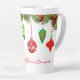 Decorate your kitchen with this festive Merry Christmas Latte mug. This mug features a vintage / retro design of ornaments that tree greenery. Personalize this mug with your own greeting.