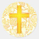 My original artwork is featured on this sheet of pretty stickers, consisting of a vintage yellow-gold pattern in the background, given a slight distressed appearance, with a modern style illustrated yellow Cross of Faith in front. These are small round stickers with 20 per sheet with vibrant colour quality. You may also option to the large 3-inch stickers if desired. They would make great envelope seals or gift bag seals for church and at Easter.