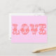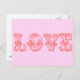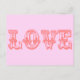 Pink background with darker pink vintage lettering spelling out the word "love". Ornate and quirky!