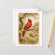 This is an AI-generated image in a vintage style of a red male cardinal.