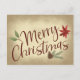 Add a vintage touch to your holiday greetings this year with this simple Merry Christmas postcard. It features the holiday message "Merry Christmas" in festive red script letters against a cream coloured background with with red poinsettia and evergreen accents. The front and back of this postcard have a distressed style to give it a vintage look.