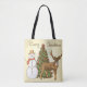 A vintage style merry christmas scene with a tree a snowman and a reindeer. This design looks really effective on this Tote Bag